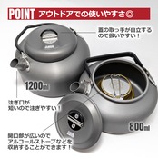 熱伝導に優れたアルミ製なので素早くお湯を沸かせます。底面の溝があることでさらに熱伝導率が向上。取っ手と蓋のつまみは自立するので、倒れてしまう心配はありません。軽量でコンパクトなサイズ感なのでウルトラライト(UL)キャンプに最適です。広い開口部からアルコールストーブなどを収納することも可能。