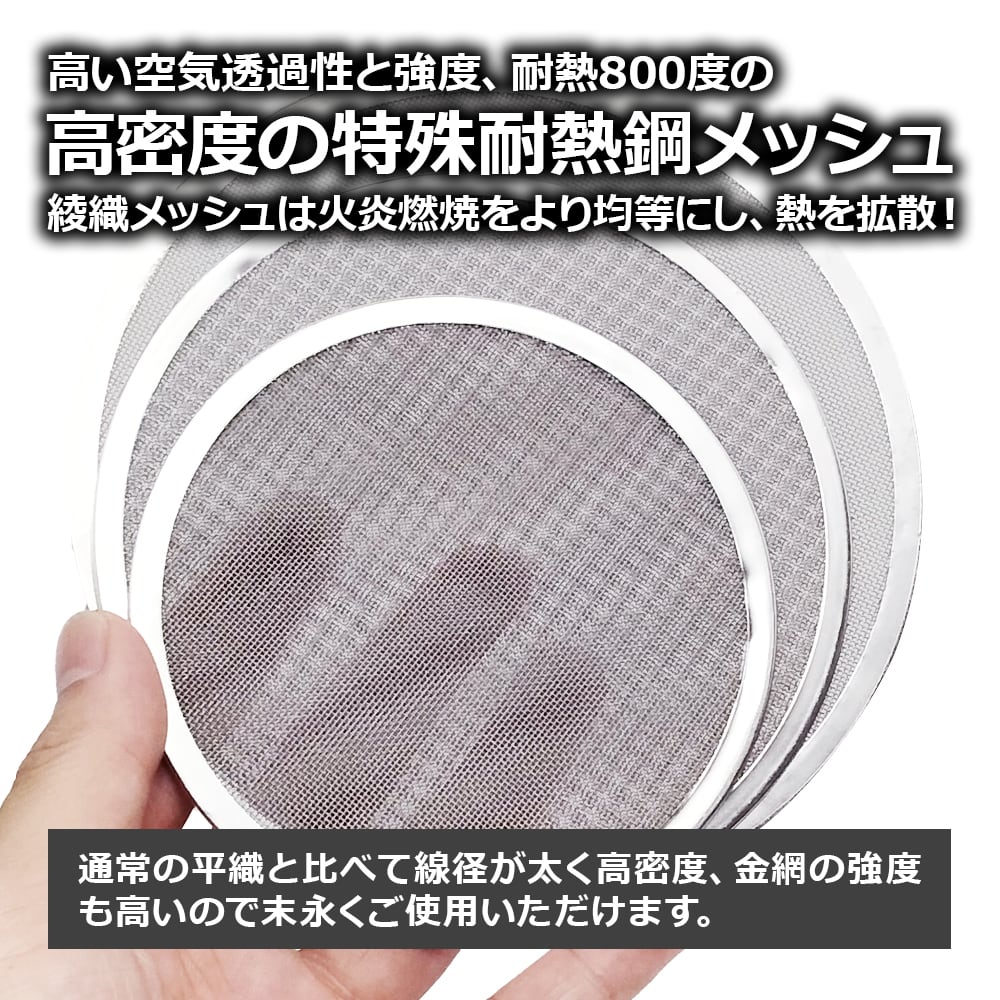 材質:特殊耐熱鋼FCHW2(メッシュ)、ステンレス鋼(枠)