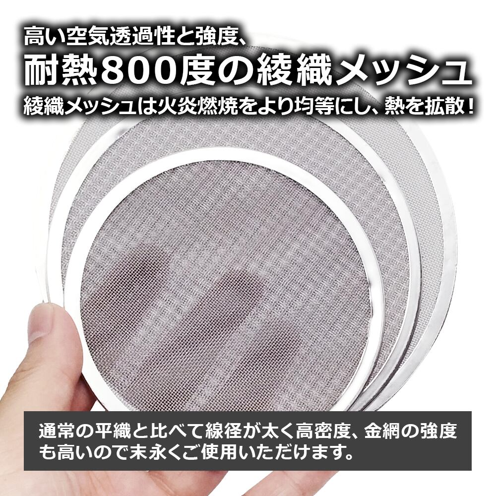 材質:特殊耐熱鋼FCHW2(メッシュ)、ステンレス鋼(枠)