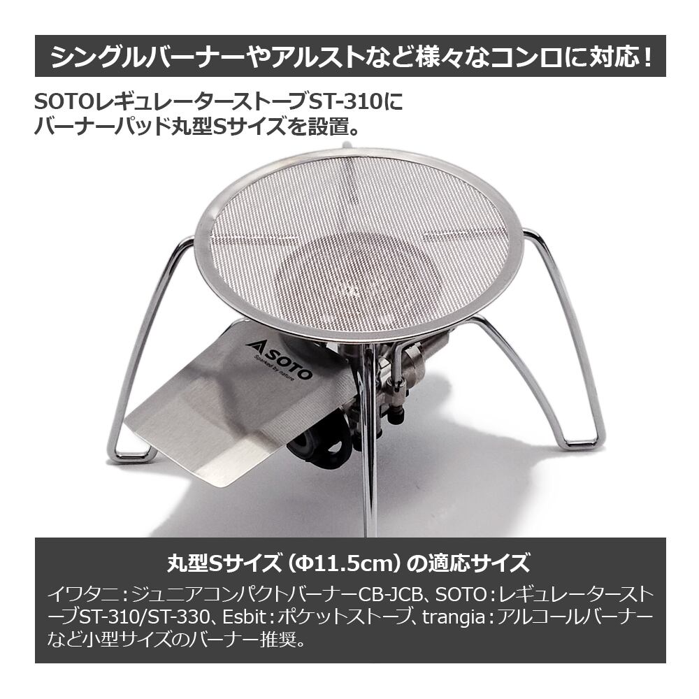 【アウトレット】バーナーパッド 丸型 S パット 綾織 シングルバーナー 網 小型 五徳 SOTO ST-330 ST-340 ST-310 ジュニアコンパクトバーナー CB-JCB に対応 ソロキャンプ アウトドア用品 キャンプ用品 収納袋付き | NCNL(NO CAMP NO LIFE)公式オンラインストア