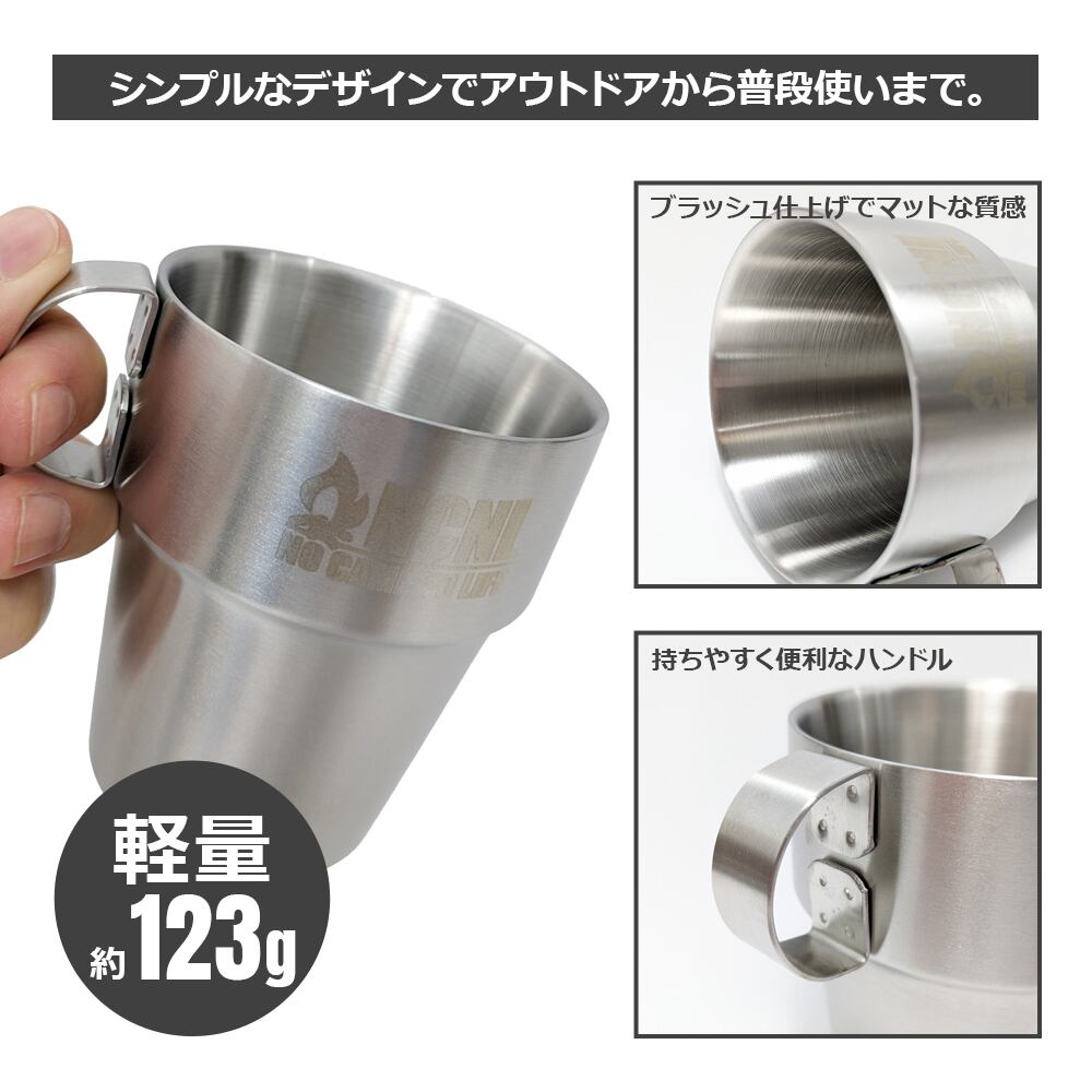 【アウトレット】マグカップ ステンレス 6個セット シンプル コンパクト 軽量 スタッキング マグ 二重構造 ダブルウォール 保温 コップ ソロキャンプ キャンプ用品 スタンド メッシュバッグ付き | NCNL(NO CAMP NO LIFE)公式オンラインストア
