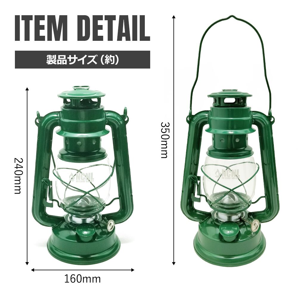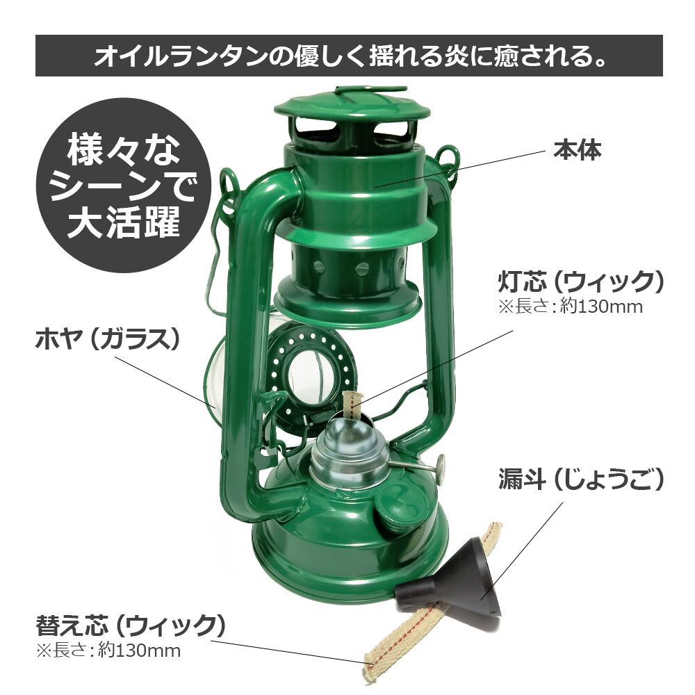 【アウトレット】オイルランタン Mサイズ ランタン オイル おしゃれ ホヤ ウィック テント キャンプ ソロキャンプ アウトドア用品 キャンプ用品 漏斗 替え芯付き (グリーン) | NCNL(NO CAMP NO LIFE)公式オンラインストア