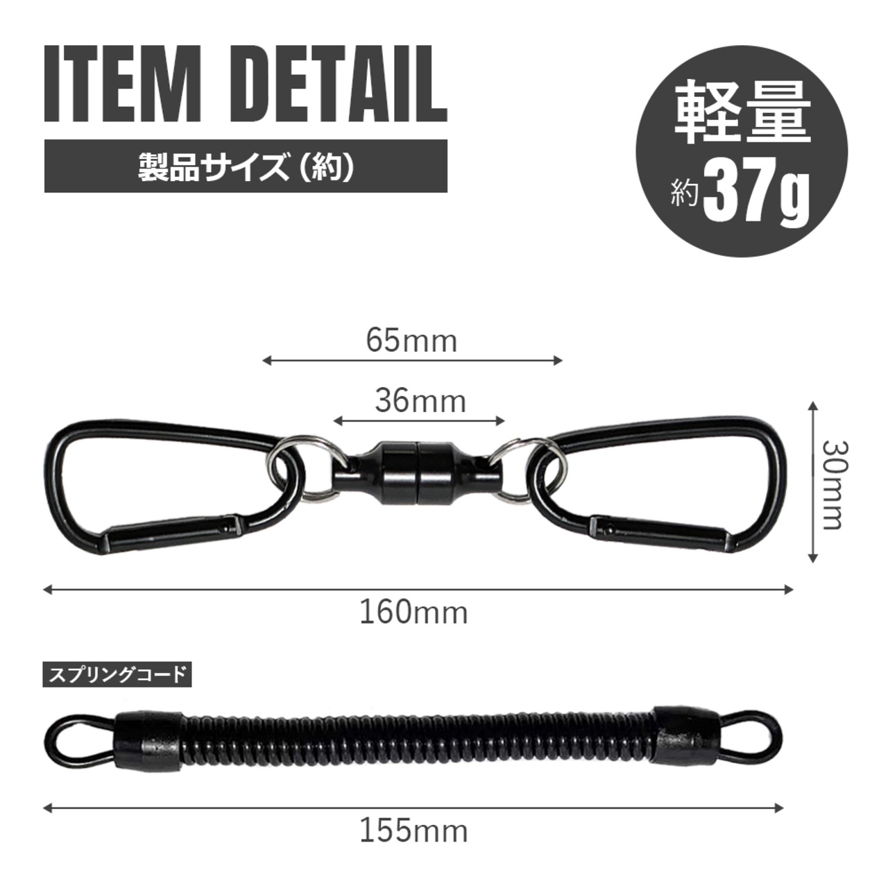 マグネットリリーサー ブラック 2個 スプリングコード 2本 カラビナ付き 耐荷重5kg 磁石 強力 マグネットリリース ニッケル合金製 吊り下げ 落下防止 アウトドア キャンプ 登山 釣り 道具 コンパクト 軽量 携帯便利 ランタンフック アウトドア用品 キャンプ用品 | NCNL(NO CAMP NO LIFE)公式オンラインストア