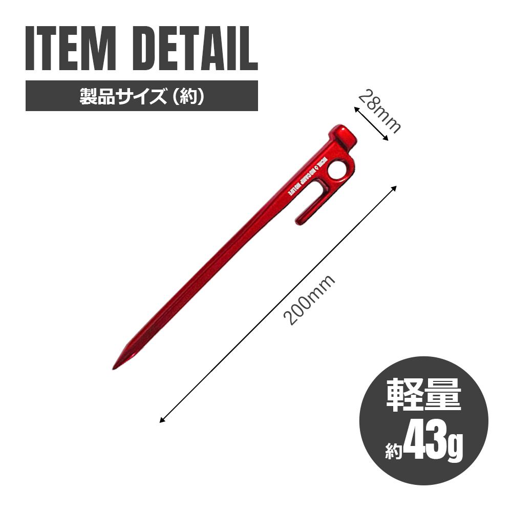 鍛造ペグ 20cm アルミニウム合金 4本セット 超軽量 高強度 頑丈 強靭 テントペグ 錆びにくい 設営道具 登山 硬い土 砂地 草地 砂浜 ソロキャンプ アウトドア用品 キャンプ用品 収納袋付き (レッド)