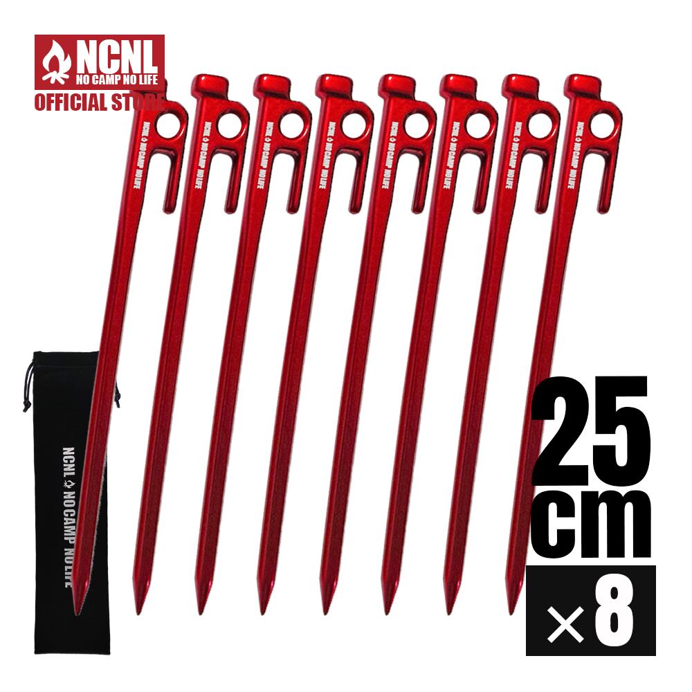 鍛造ペグ 25cm アルミニウム合金 8本セット 超軽量 高強度 頑丈 強靭 テントペグ 錆びにくい 設営道具 登山 硬い土 砂地 草地 砂浜 ソロキャンプ アウトドア用品 キャンプ用品 収納袋付き (レッド)