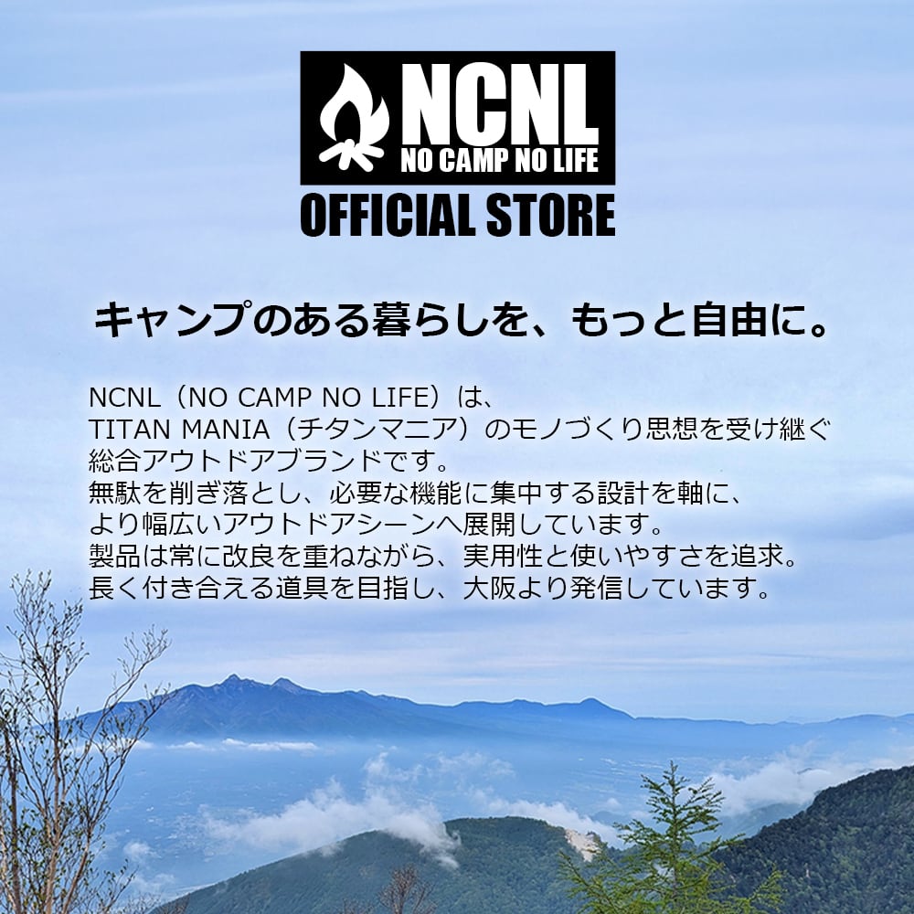 NCNL(NO CAMP NO LIFE)はTITAN MANIA(チタンマニア)のモノづくり思想を受け継ぐ総合アウトドアブランドです。無駄を削ぎ落とし、必要な機能に集中する設計を軸とし、より幅広いアウトドアシーンへ展開しています。製品は常に改良を重ねながら、実用性と使いやすさを追求。長く付き合える道具を目指し、アウトドアを楽しむ全ての方々のお手伝いをするため、様々な商品を大阪より発信していますのでTITAN MANIA(チタンマニア)同様引き続き応援よろしくお願いいたします。