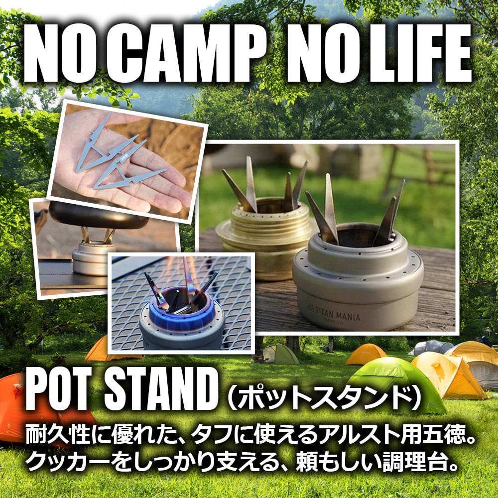ステンレススチール製で耐久性に優れた、タフに使えるアルコールストーブ用ポットスタンド(五徳)。2枚のプレートを交差させてストーブに差し込むことでアルスト用のゴトクに。ケトルを固定し、安定した湯沸かしが可能になります。軽量なのに強靭なポットスタンドはクッカーをしっかり支える、頼もしい調理台。